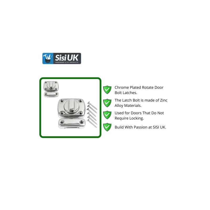 Chrome Door Lock Latches Rotating Bolt Latch Zinc Alloy Gate Latches Bathroom Door Bolt Rotate with Screws for Bathroom Door Cabinet Door Pack of 1.