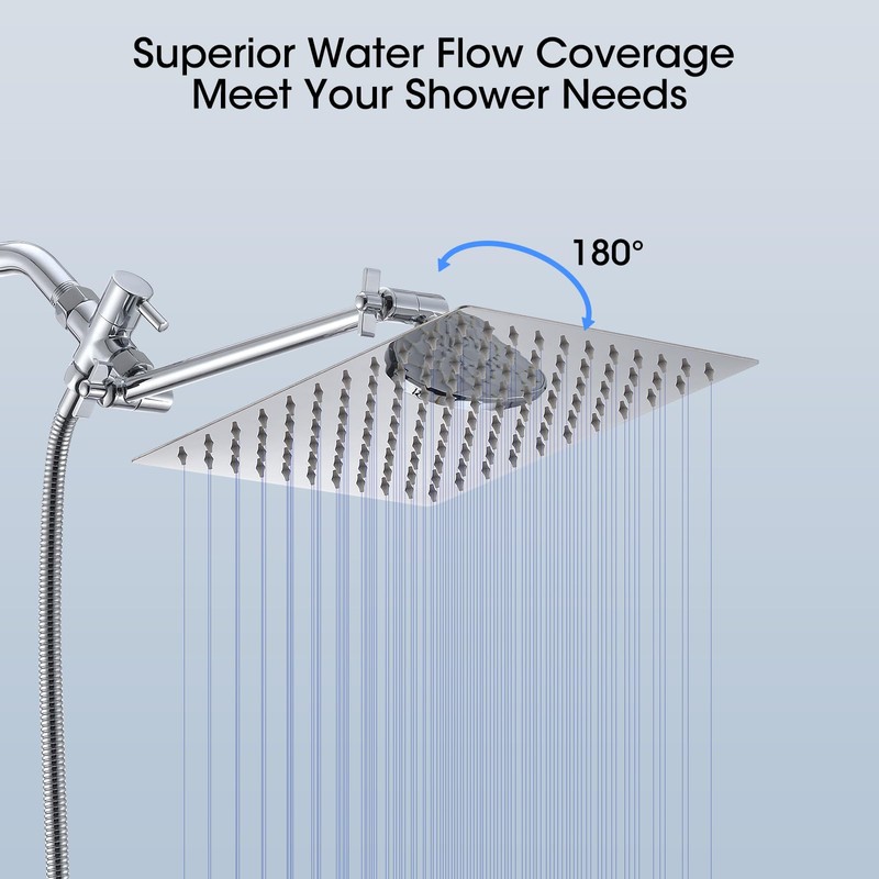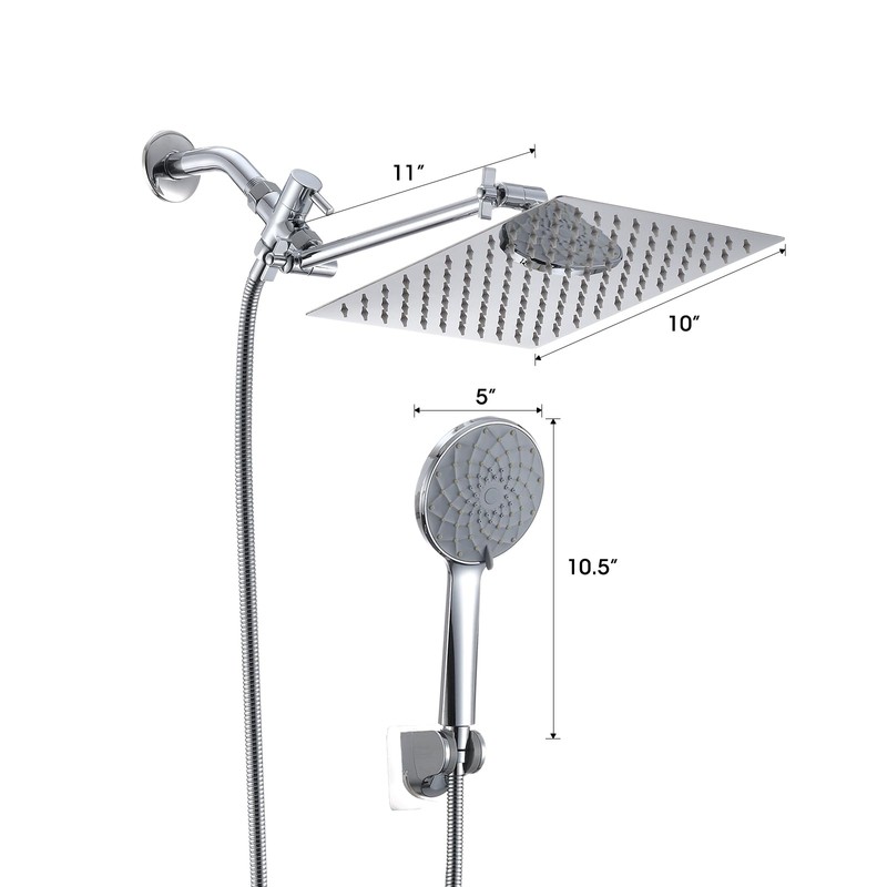 Chrome Shower Head, 10 Inch Rainfall Shower Head with Handheld Shower Combo and 11 Inch Extension Arm