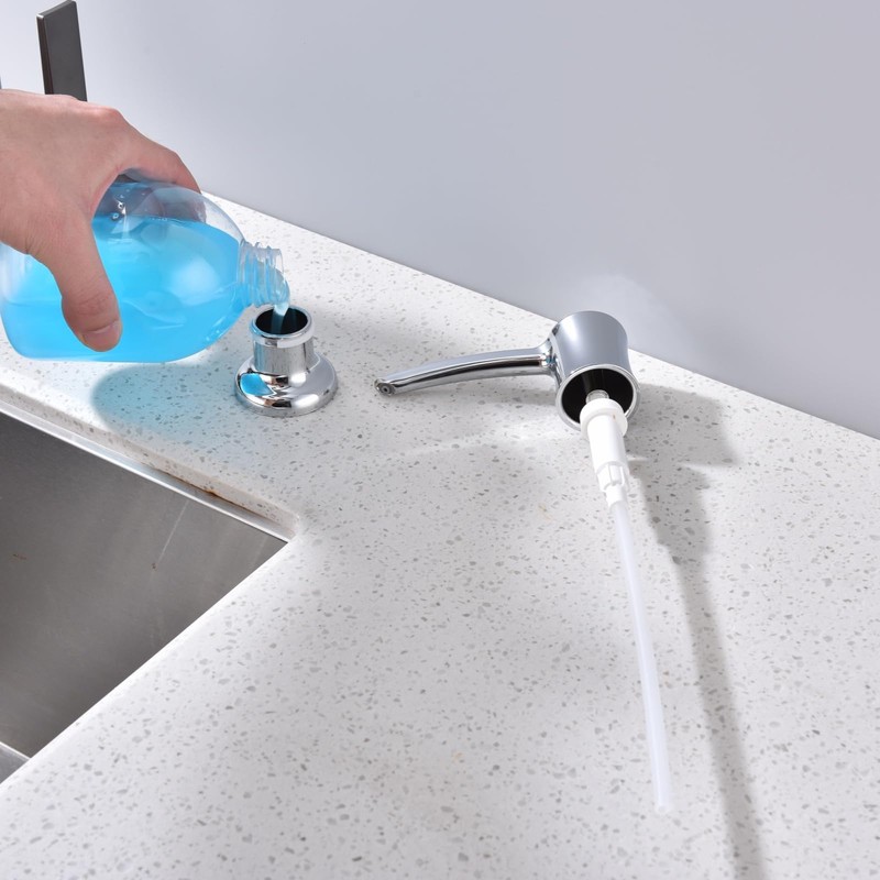 Chrome Soap Dispenser for Kitchen Sink, Built in Sink Soap Dispenser, Countertop Dispenser Pump with 320ml Bottle,47.2" Silicone Long Tube for 7.9 "- 13.8" High Capacity Bottle Mouths