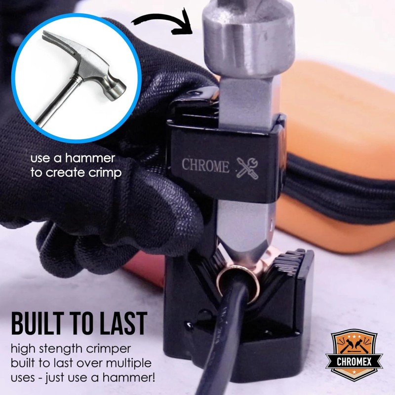 Chromex Battery Cable Lug Crimper - Hammer Crimping Tool with Storage Pouch
