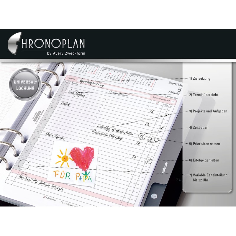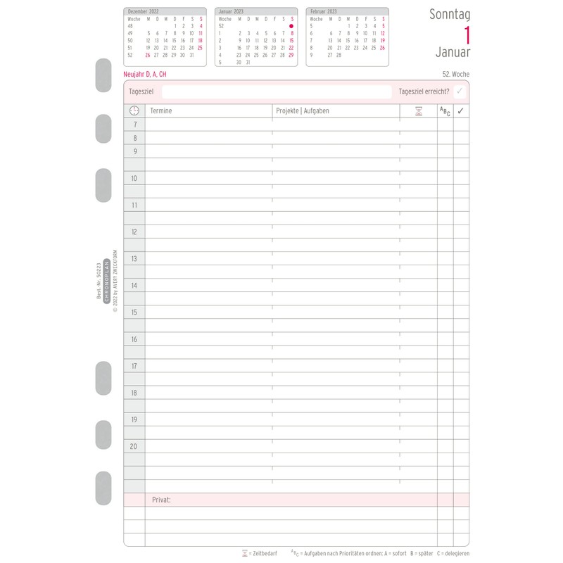 Chronoplan 50223 Calendar Insert 2023, Daily Plan in A5 Format (148 x 210 mm), Replacement Calendar, Ideal for Detailed Daily Planning, Multi-Punching (1 Day on 1 Page), White