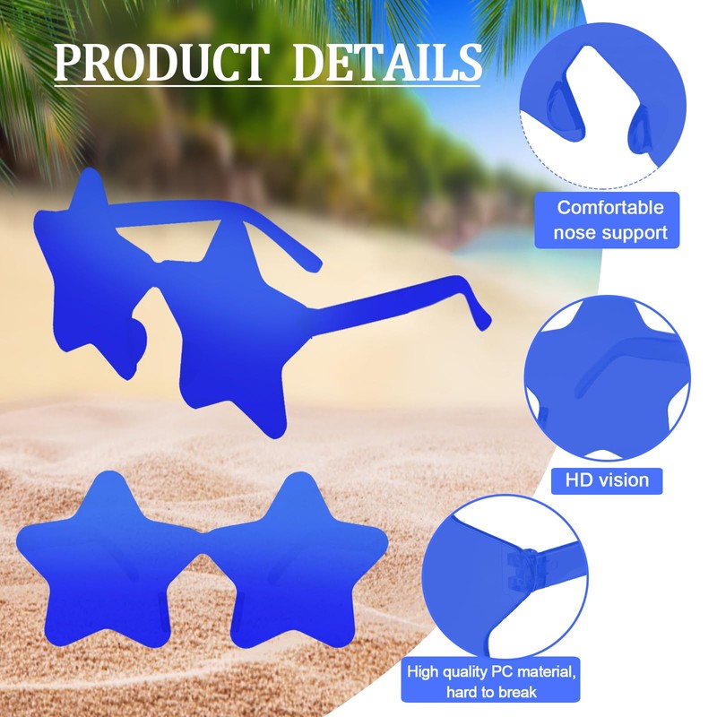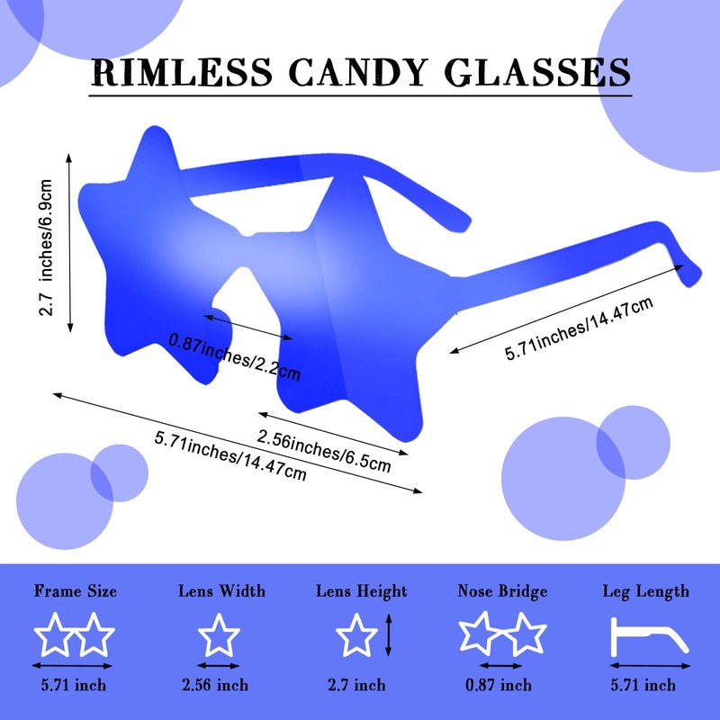 CHRORINE 8/16/24/40 Pairs Rimless Star Shape Sunglasses Transparent Glasses Bulk for Party Decor Favor (8, Dark-blue)