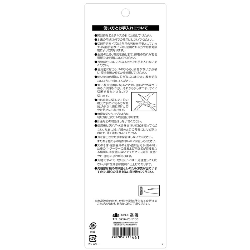 高儀 Chrysanthemum Hall Stainless Twigs Cutting Scissor 210 mm