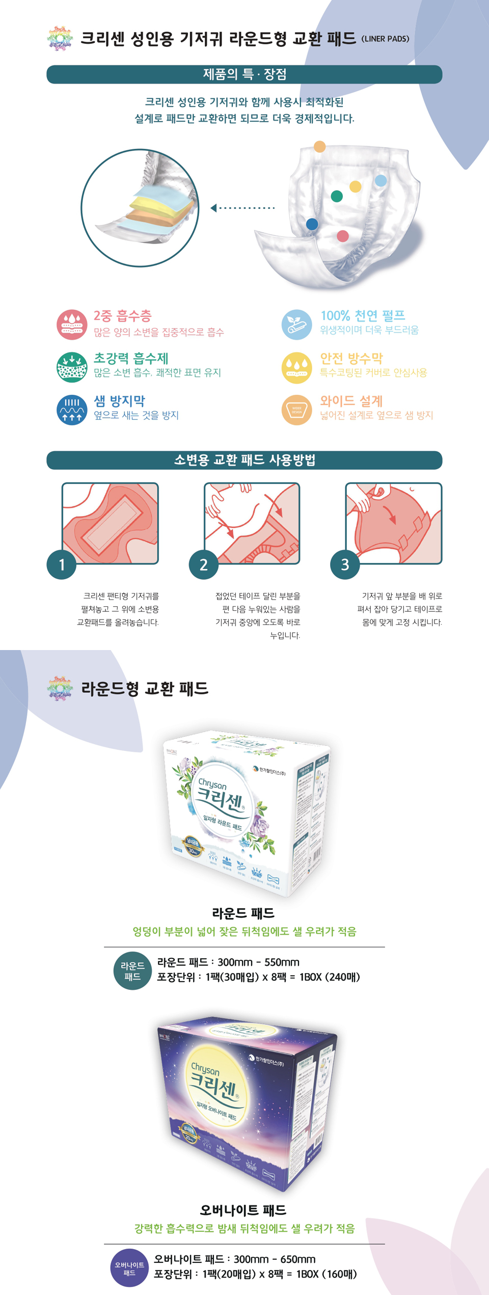 Chrysen adult inner diaper pads (round type 30 sheets) 4 packs / 크리센 성인용 속기저귀패드(라운드형 30매입) 4팩
