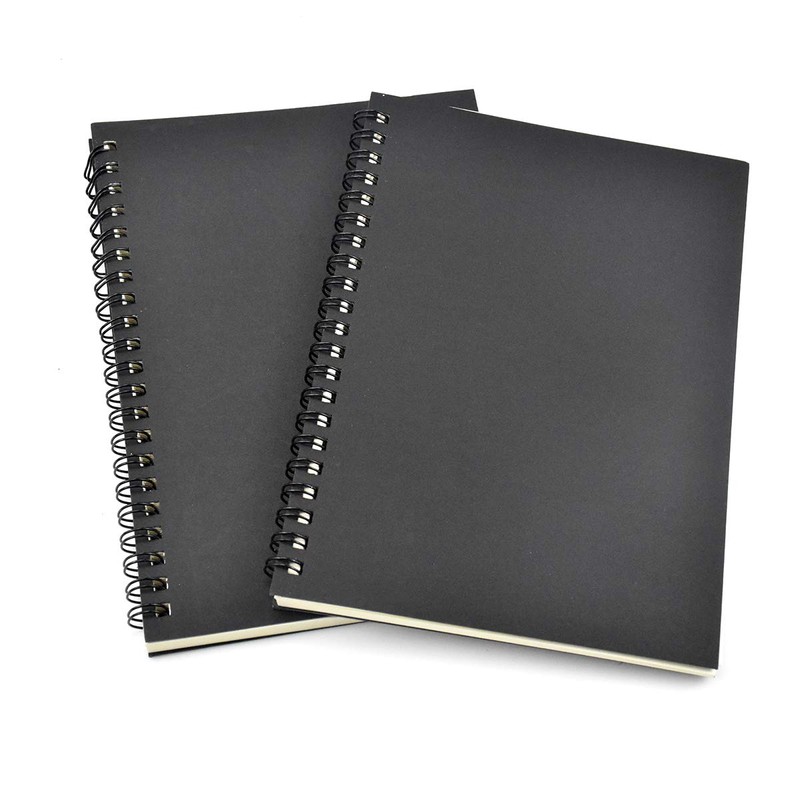 Chstarina 2pcs A5 Sketchbook Spiral Bound Black Sketch Book Kraft Cover Spiral Notepad Empty Sketch Pad Paper Drawing Artist Pad for Painting Graffiti and Memos 12 x 18 cm