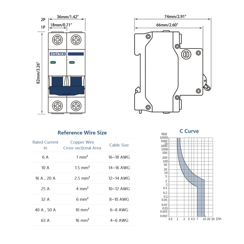 Please select the wire size according to the rated current.
