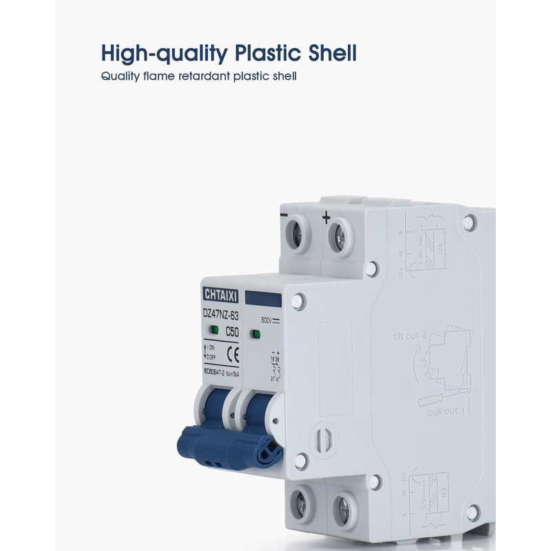 - Arc Removal - These DC miniature circuit breakers have a more powerful magnetic arc extinguishing system to help extinguish arcs.