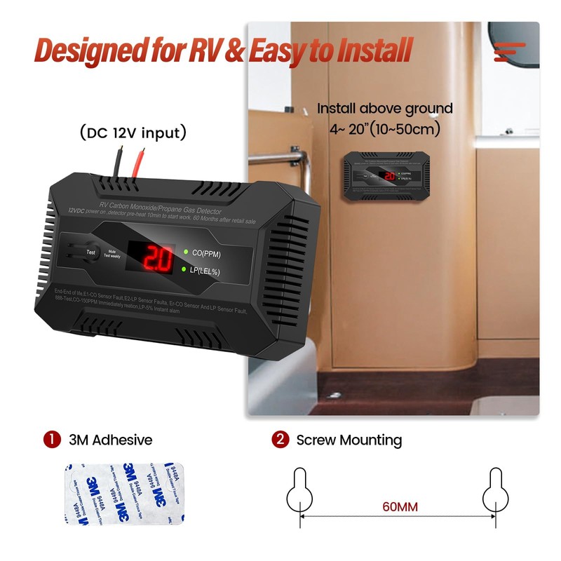 - Dual LP/CO Alarm Powered by V - Runs continuously on V power from your RV or vehicle's battery. It takes only minutes to install this alarm using M adhesive strips or screws near the ceiling for maximum coverage. Protects your RV from carbon monoxide and propane gas leaks