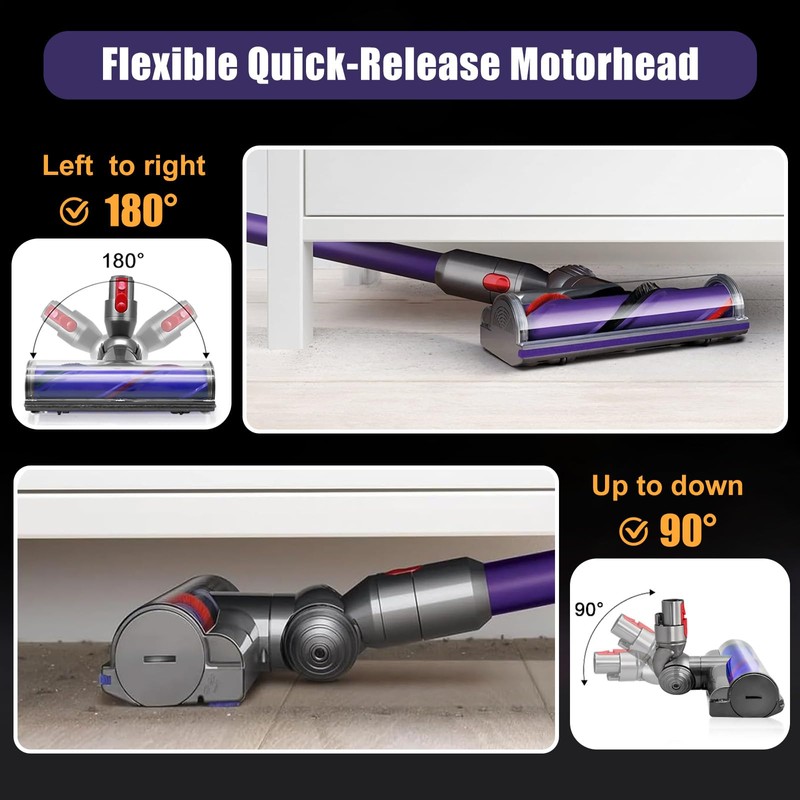 - Starke Flexibilit?t: Der Turbinenb1rstenkopf mit Schnellverschluss verf1gt 1ber ein ergonomisches Design und unterst1tzt eine vertikale 90??-Drehung und eine horizontale 180??-Drehung. Die Bodenb1rste gleitet m1helos unter M?beln und Schr?nken hindurch, um schwer erreichbaren Schmutz und Ablagerungen zu entfernen, sodass Ihr Staubsaugen einfacher und agiler wird