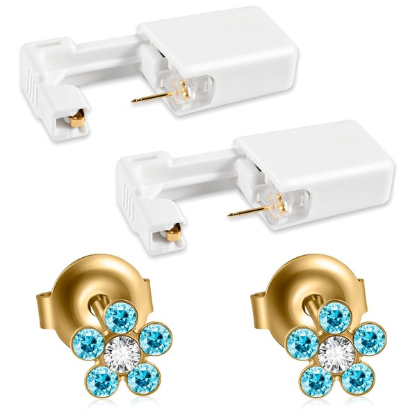CHUANCI PAIR Disposable Sterile Ear Piercing Unit Flower/Butterfly Ear Tragus Piercing Gun Home Use NO PAIN Piercer Tool Machine Kit Stud (PAIR Gold Aqua Cz Flower)