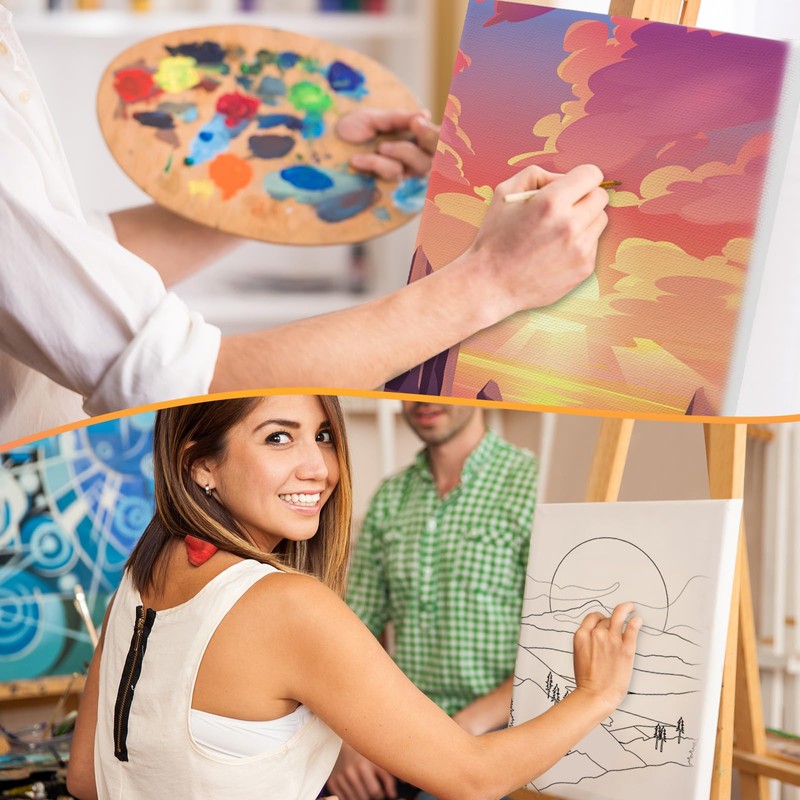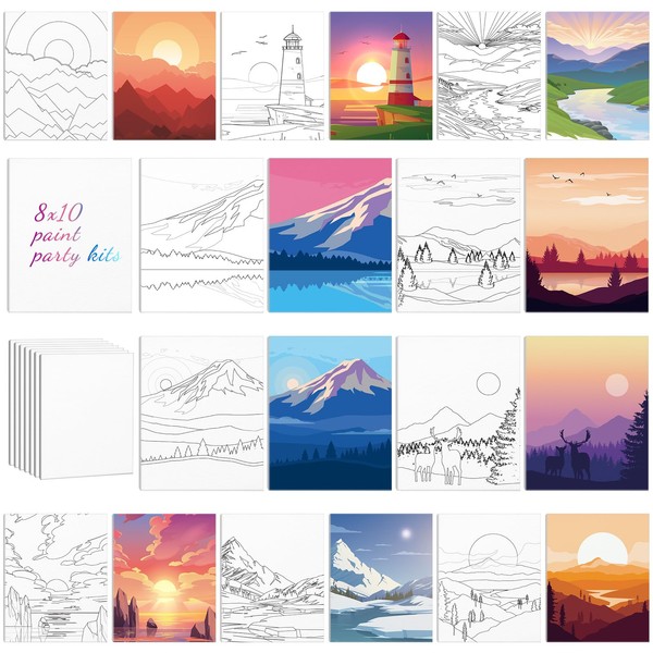 Chuangdi 10 Pcs Landscape Pre Drawn Canvas for Painting Pre Printed Paint and Sip Party Supplies 8 x 10 Inch Stretched Outline Board Painting Kit for Adults Beginner Artist DIY
