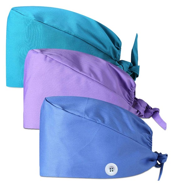 CHUANGLI 3Pcs Gourd-Shaped Working Caps with Upgrade Sweatband Adjustable Bouffant Hats Headwear - Women/Men