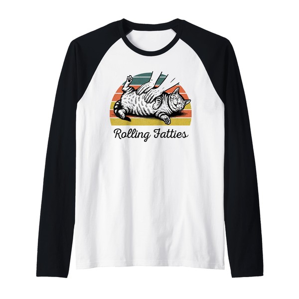 Chubby Tabby Cat Pure Bread Rolling Fatties Funny Vintage Raglan Baseball Tee