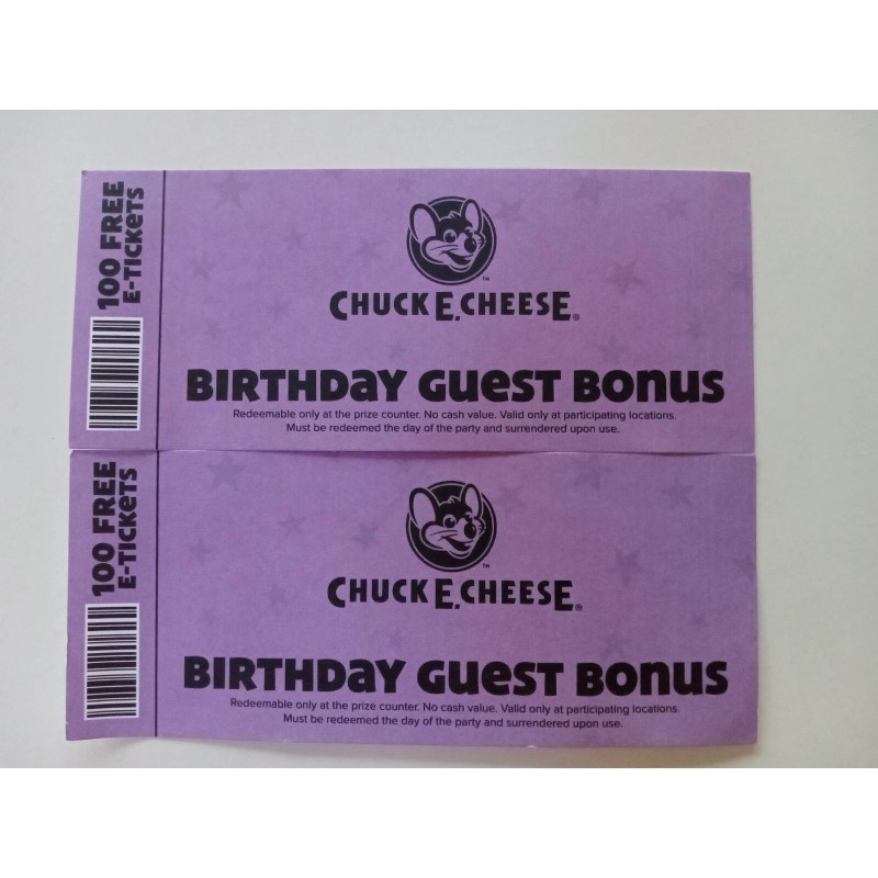 Chuck E Cheese's BIRTHDAY GUEST BONUS COLLECTOR MONEY 100 E-TICKETS COLLECTORS!