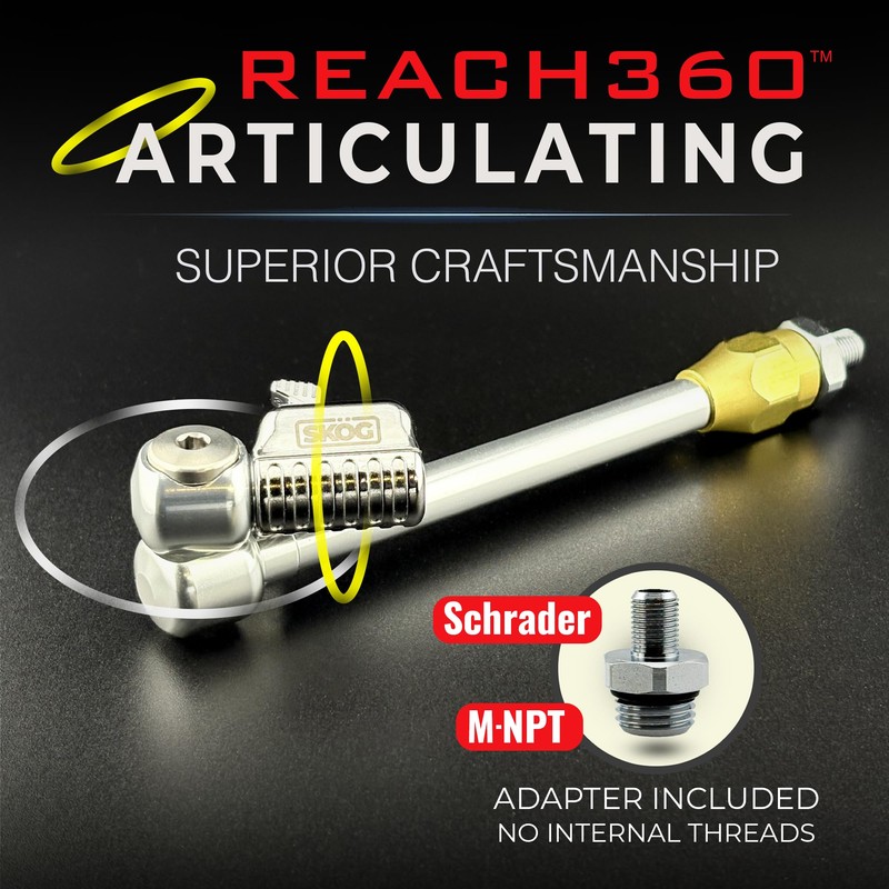 Chuck Mates™ Reach360™ Platinum Series Articulating Rigid 7" Extension with Adapter for Tire Inflators | Dually Trucks RV Bicycle Car Semi