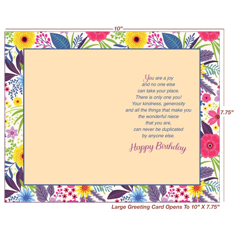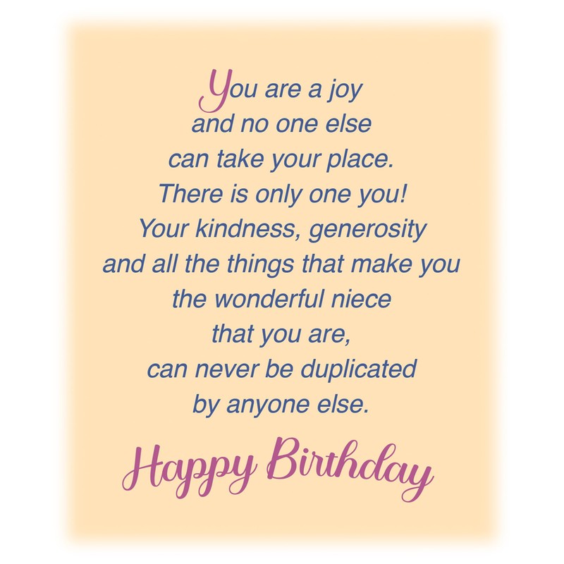 - INSIDE MESSAGE - You are a joy and no one else can take your place. There is only one you! Your kindness, generosity and all the things that make you the wonderful niece that you are, can never be duplicated by anyone else. Happy Birthday