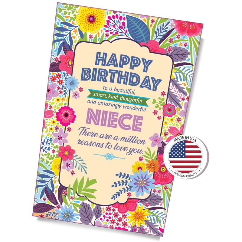 Chuck's Card-O-Rama - Birthday Card For Niece - Made in America - Premium Card Stock, Envelope Included - 5" x 7.75" - Packaged in Extra Sturdy Mailer - 95407