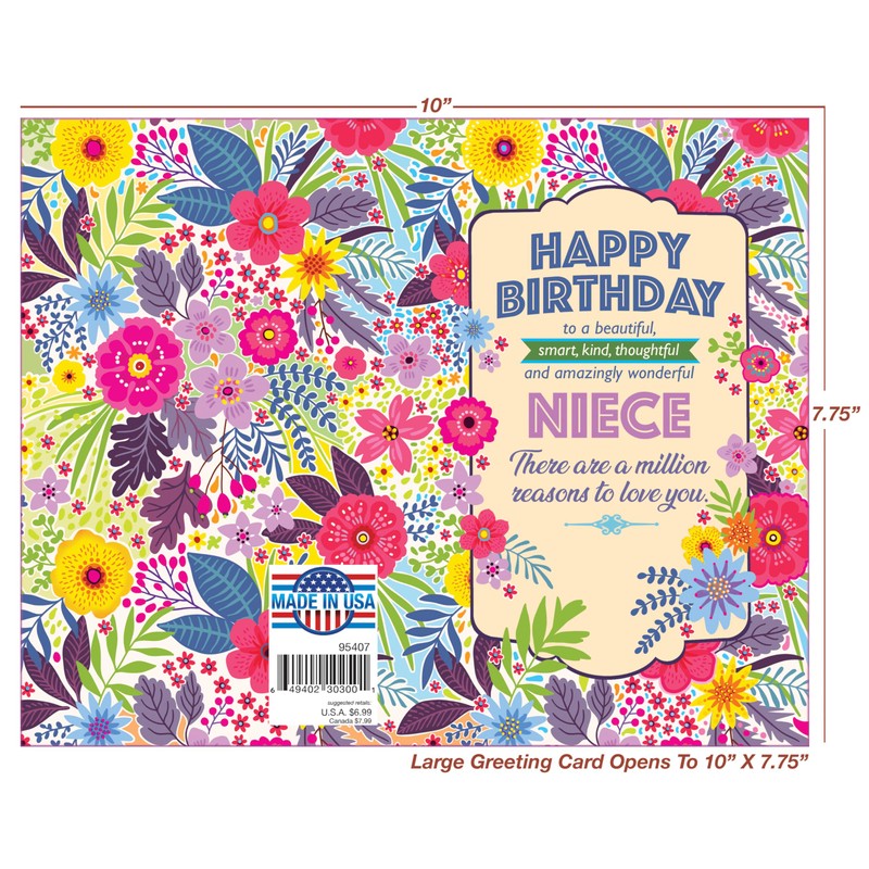 - This perfect birthday card for niece is made with top-quality, extra high gloss paper for richer, more vibrant and brighter colors. Full color throughout the interior and back as well. Perfect sentiment. The difference is immediately obvious! Beautiful!