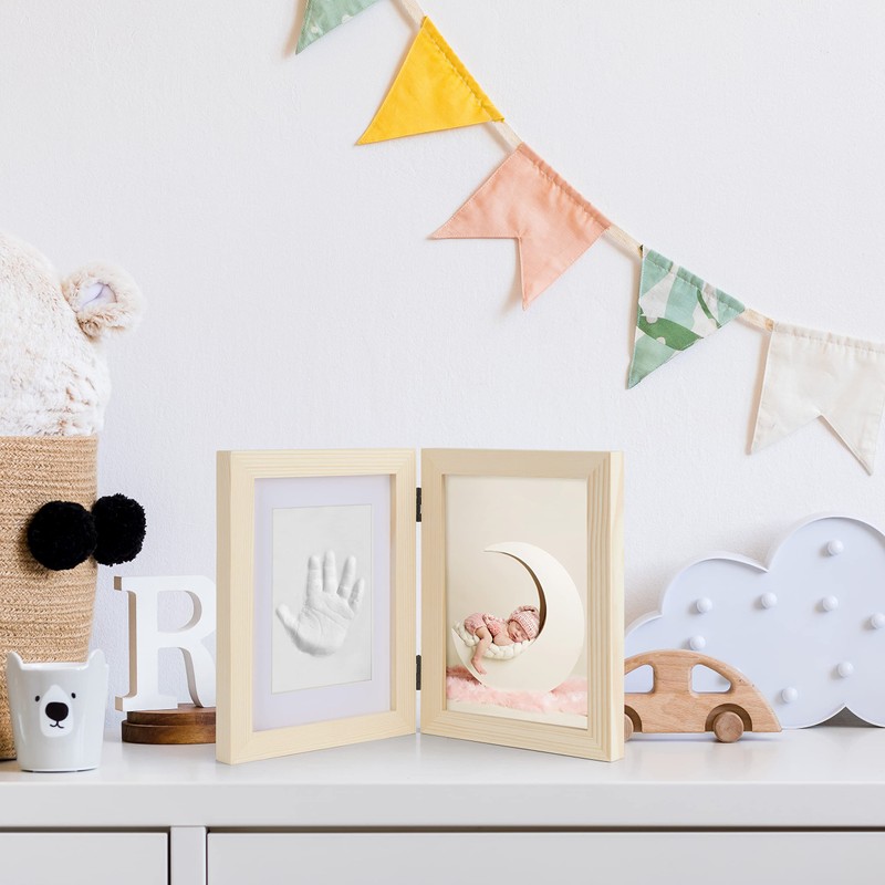 - 🌲 Premium Pine Frame: Crafted from high-quality pine wood, the frame not only provides a sturdy and durable display for the clay imprints and photos but also adds a touch of natural elegance to any room.