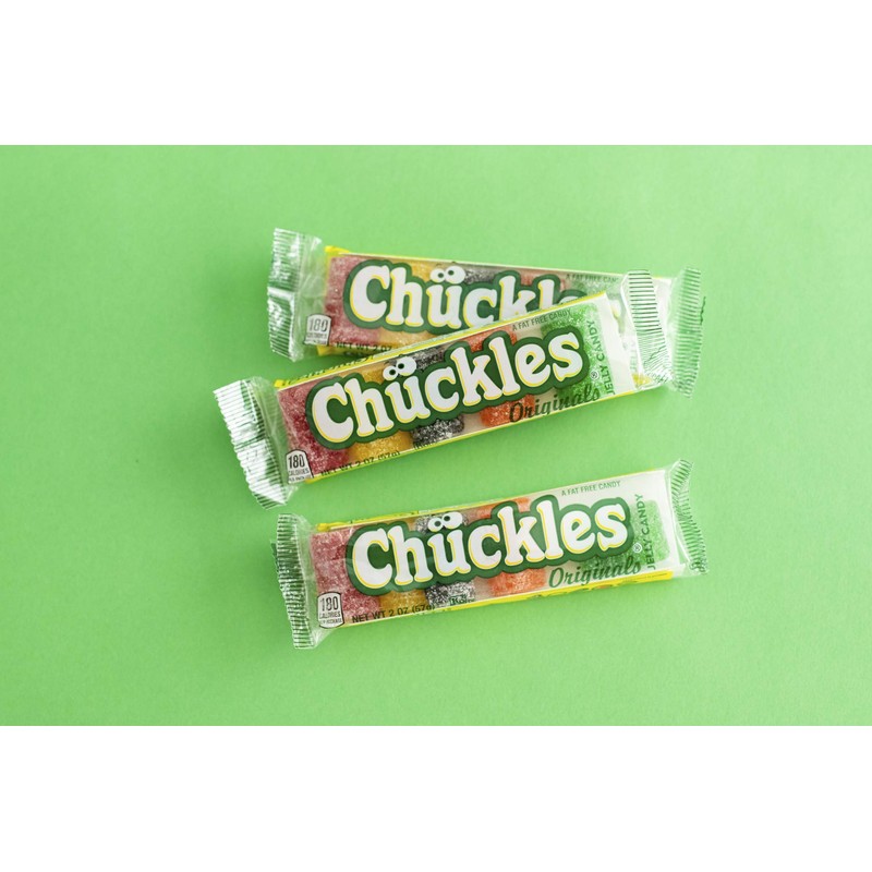 - SHARE THE GOOD TIMES: No matter where you are, you can't go wrong with having some Chuckles. With 24 individually wrapped trays, you can give all your friends and family something to smile about. This unique candy is easy to share and even easier to enjoy.