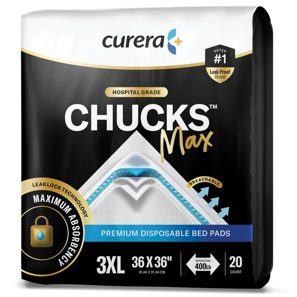 Curera CHUCKS MAX Adult Disposable Bed Pads 3XL (36 x 36"), 400 Lbs. 20 Pads, Package May Vary