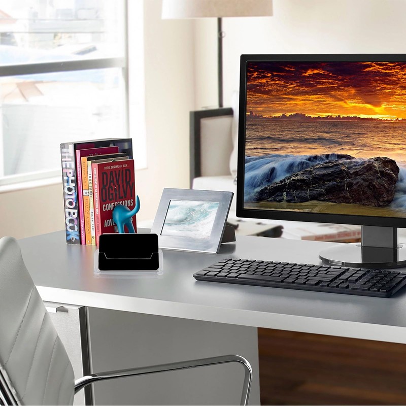 • (Lightweight and portable) business card stand landscape format is made of high-quality, lightweight plastic, which hardly causes additional strain in briefcases, handbags or bag. Its slim design makes it an ideal accessory to take with you, allowing you to display and exchange your business cards anytime and anywhere without worrying about too large a size or discomfort when carrying.