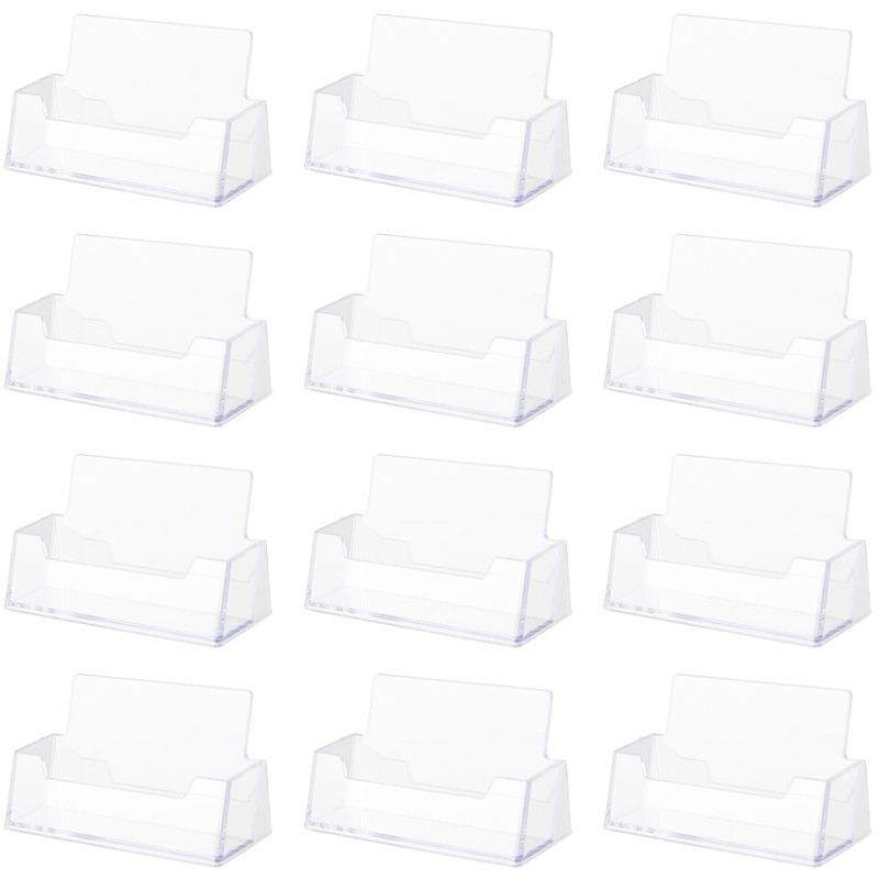 CHUEHKAK Pack of 12 Transparent Business Card Holders, Square Business Card Stand, Landscape Format, 100 x 40 x 53 mm, Suitable for Home Office, Counter, Standard Business Cards