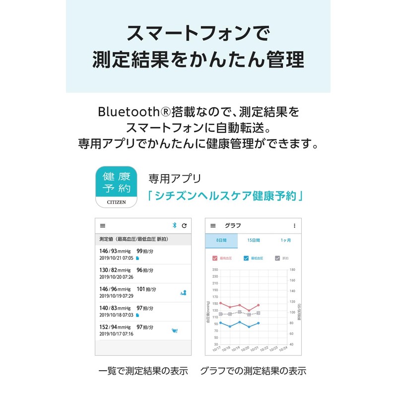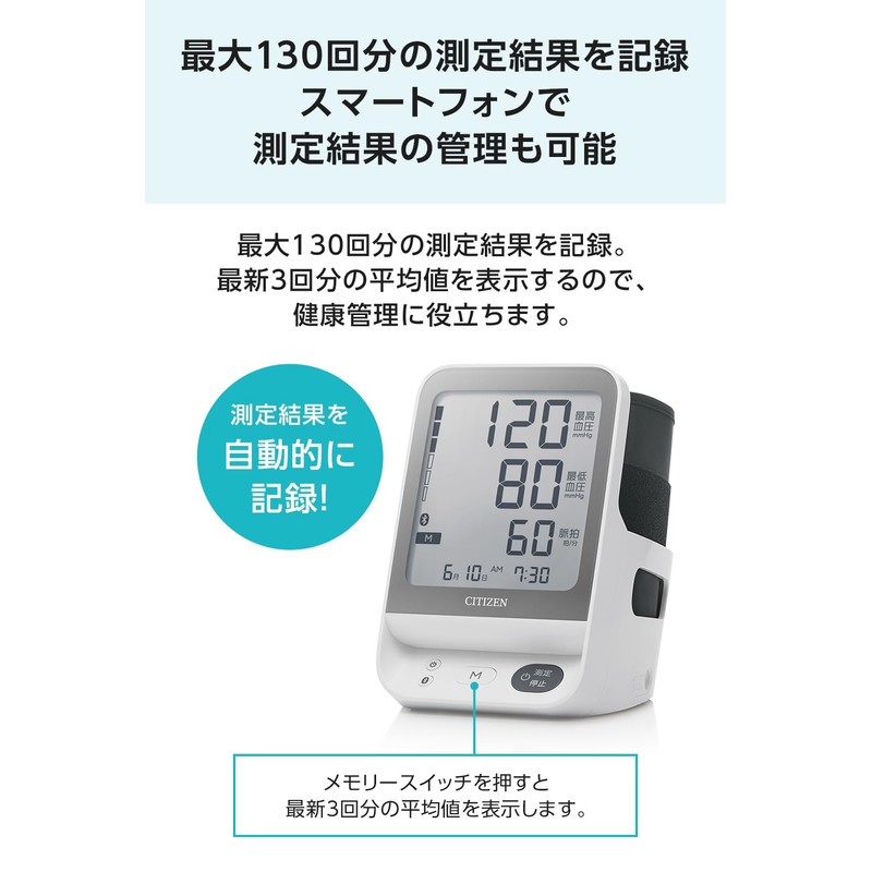 - 130回分の測定結果が記録されます。(測定結果をスマートフォンに転送して記録できます。)