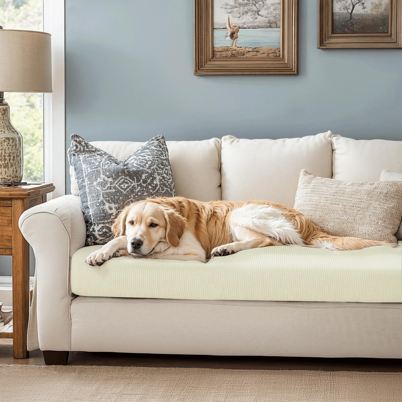 CHUN YI Stretch Couch Cushion Cover Suitable for 3 Settee, Individual Replacement Sofa Seat Slipcover with Elastic Spandex Jacquard Fabric(Large,Ivory White/Cream)
