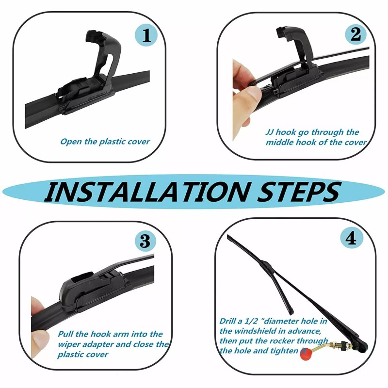 Easy Installation: When installing this manual wiper, we drill a hole with a diameter of 1/2 "on the windshield glass. The installation steps are shown in the figure to ensure correct installation.