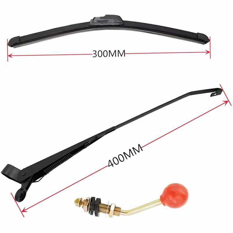 15.7 Inch Universal UTV Windshield Wiper Hand Front Operated Kit Compatible with Polaris Ranger RZR 800 900 Kawasaki Can Am of Manual Windshield Wiper