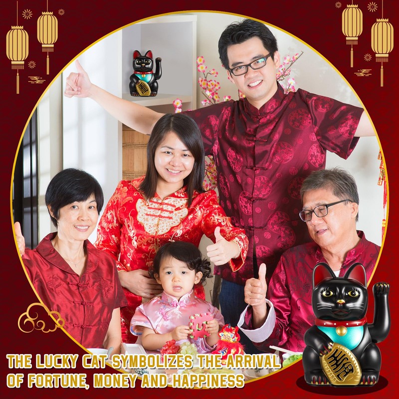 - Cute and Compact Design: crafted in black plastic, this adorable good luck cat with a waving hand measures at about 6 x 3.5 x 3 inches in size; Its enchanting design fits suitably as a decorative ornament in most home, business, or commercial establishment; Strengthened with smiling eyes, this cute cat brings happiness and prosperity as it warmly greets you with a friendly wave