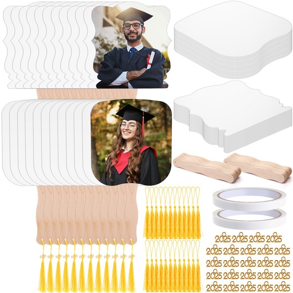 - Package Includes: 24 blank sublimation fans (2 styles of fan surface), 24 wooden sticks, 24 graduation season 2025 metal ornaments, 24 mini tassels and 2 rolls of double-sided tape; The abundant quantity and good combination can meet your DIY fan needs