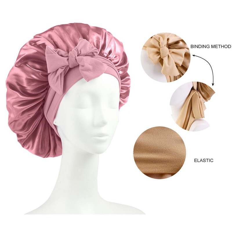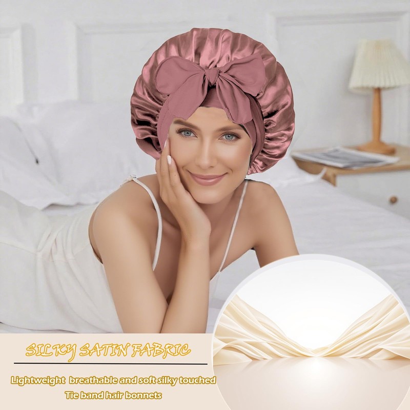 This tie-strap bonnet comes in satin for durable softness. Colors range from soft pastels (pink, lavender) and prints for women’s,satin bonnet for sleeping, to solid dark hues (black, navy) for men’s understated style. Perfect for curly hair, long locks, or anyone needing a "sleep cap" to protect tresses overnight.
