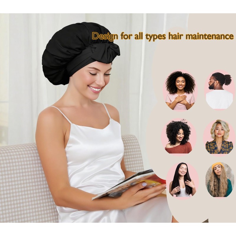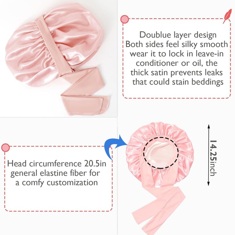 • 【Double-Layer Protection】Our hair bonnets features two layers of fade-resistant satin, both sides feel silky smooth agaisnt your strands. wear it to lock in leave-in conditioner or oil,the thick satin prevents leaks that could stain beddings