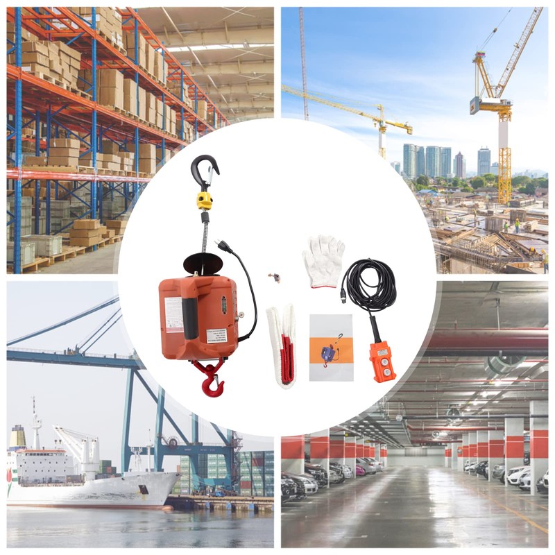 - [Application]--This electric hoist can be used at home or in a warehouse to lift items such as bicycles, kayaks, groceries and lumber; it can also lift large objects such as lawn mowers and engines.
