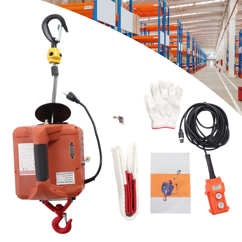 - [Lifting Capacity]--With a lifting capacity of 500kg/100lbs, 1500W high power motor, lifting speed up to 5m (16ft)/min and traction distance up to 7.6m/25ft, this electric hoist can easily lift heavy loads to meet your needs in a short time.
