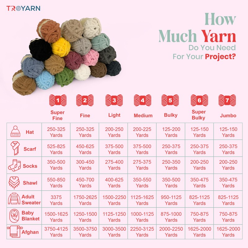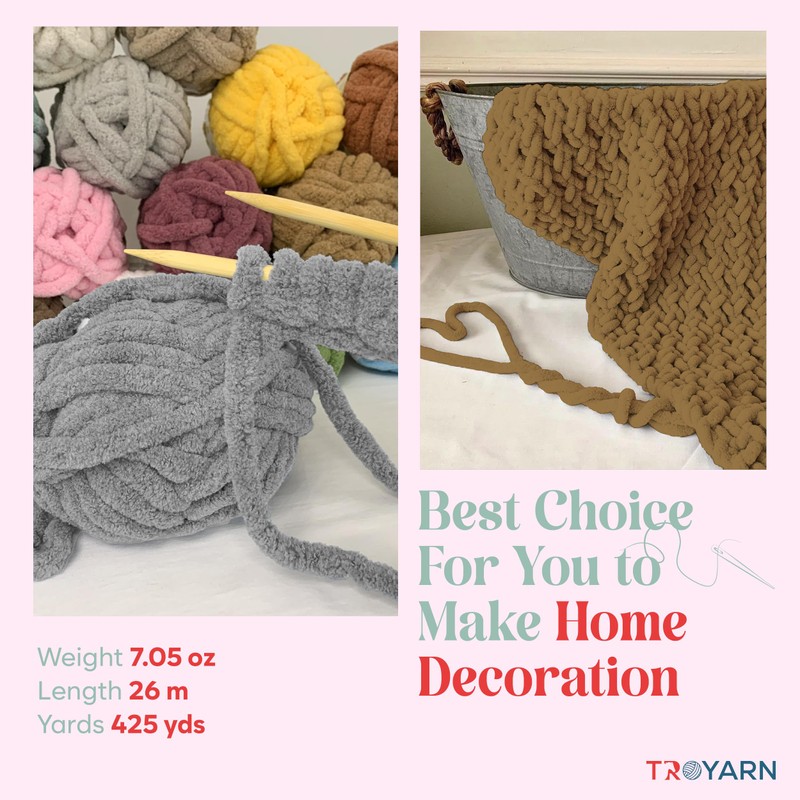 - Jumbo Chunky Chenille Yarn – Each skein weighs 8 oz (226.8 g) and measures 28 yds (26 m) in length, with a diameter of approximately ¾ inch. Works best with US 50 (25mm) needles for smooth and effortless knitting or crocheting.