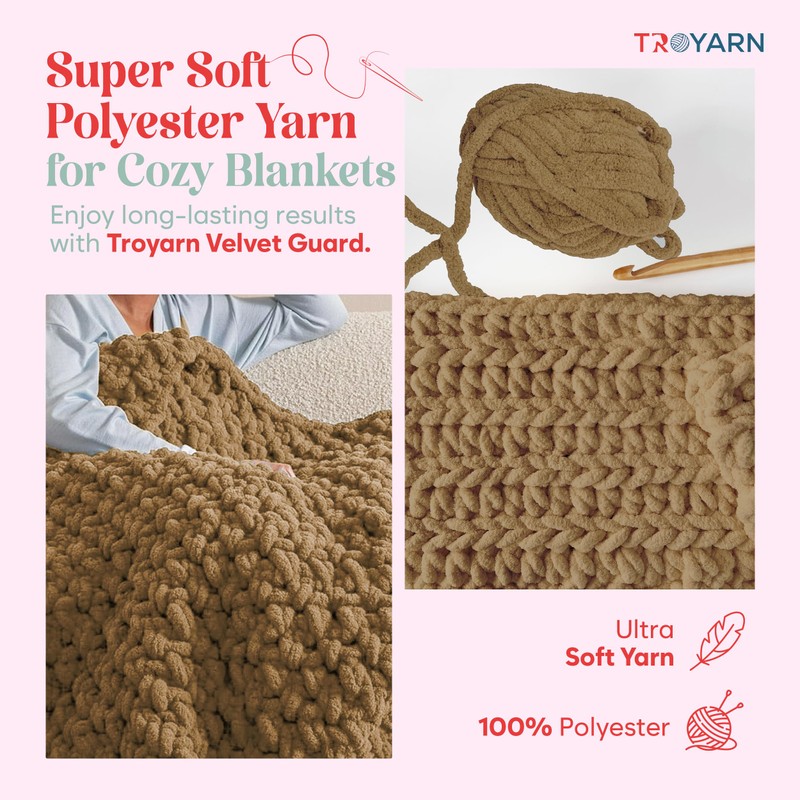 Chunky Chenille Yarn by Troyarn,Super Bulky, Soft, Fluffy Plush Yarn Crocheting, Knitting, Hand Knitting, Blanket Making, Jumbo Skeins for Arm Knitting, Home Décor-4x200gr / 4x28yd(121107-Brown)