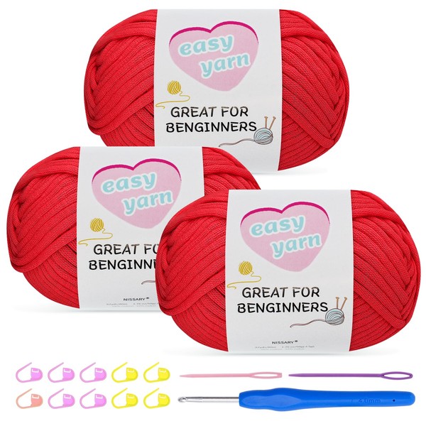 Chunky Cotton Yarn for Crochet 3-Pack 100g Each No Split Thick for Knitting Crochet Crafts with 4mm Hook Starter Kit for Beginners Amigurumi Projects (Red-3)