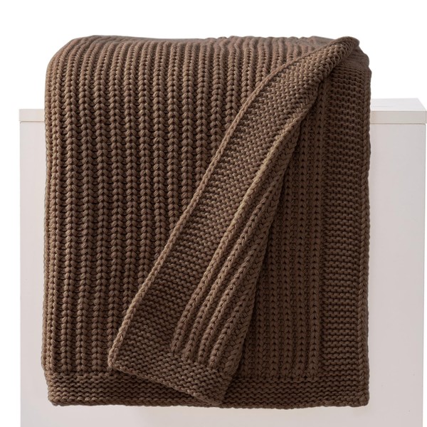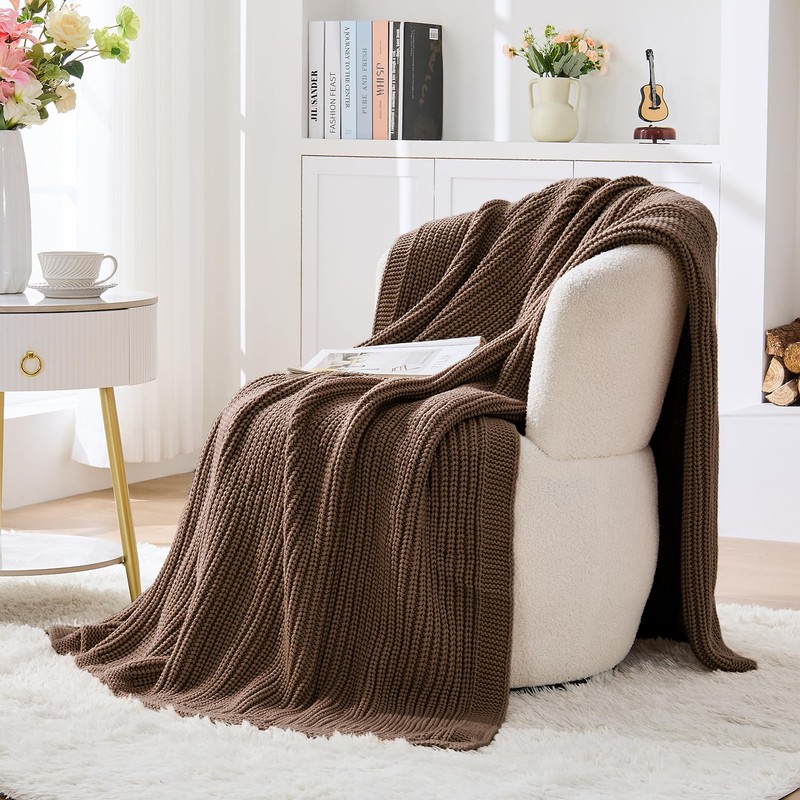 Chunky Knit Brown Throw Blanket for Couch Soft Cozy Large Thick Knitted Throw Blankets for Sofa Bed Cute Decorative Throw Blanket for Living Room,60"x 80",Dark Brown