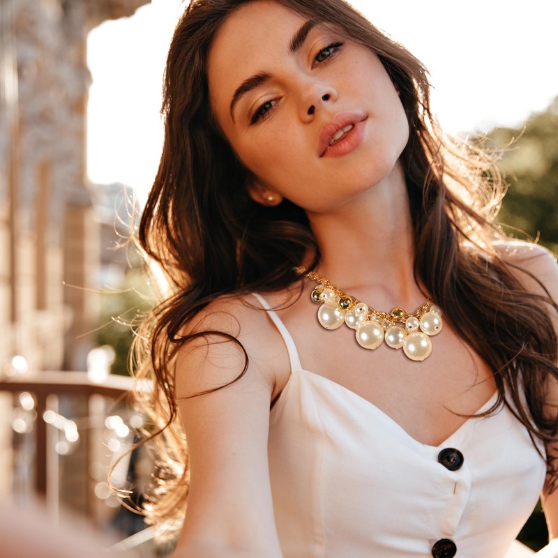 - Statement Pearl Choker Necklaces: Made with high-quality imitation pearls that have a smooth and lustrous surface, this necklace is crafted to perfection. The pearls are carefully selected for their size and shape, ensuring a uniform and polished look.