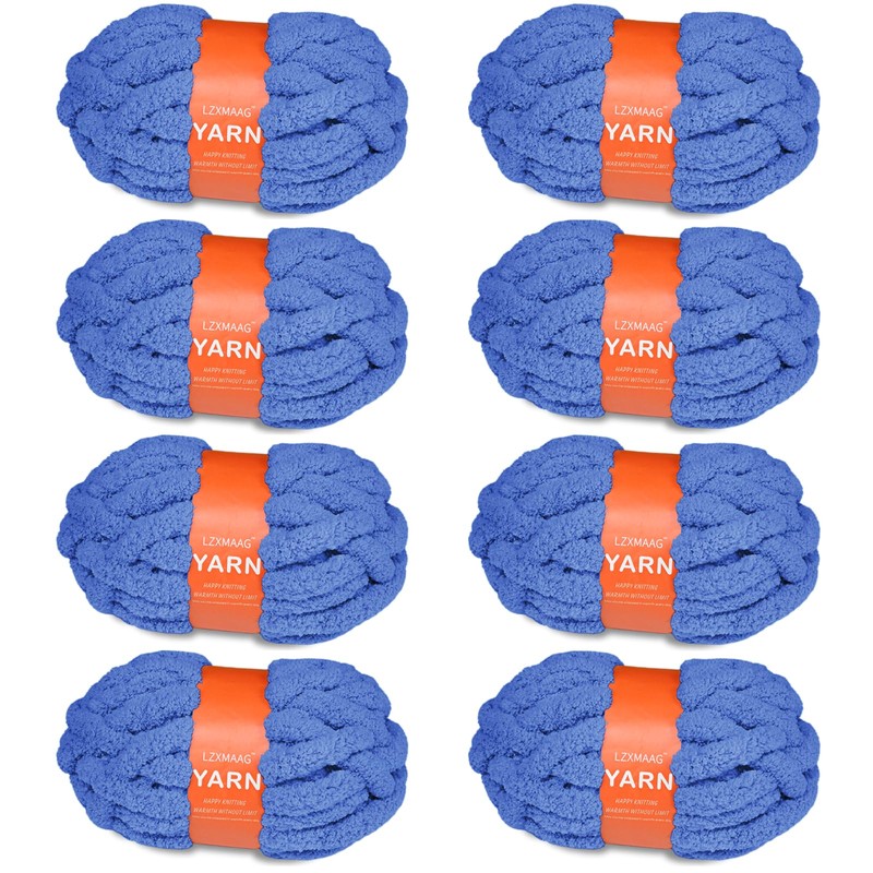 Chunky Yarn for Hand Knitting and Blankets – Super Soft Jumbo Chenille Yarn Pack for Crocheting, Bulky DIY Projects, 8 Skeins(Country Blue)