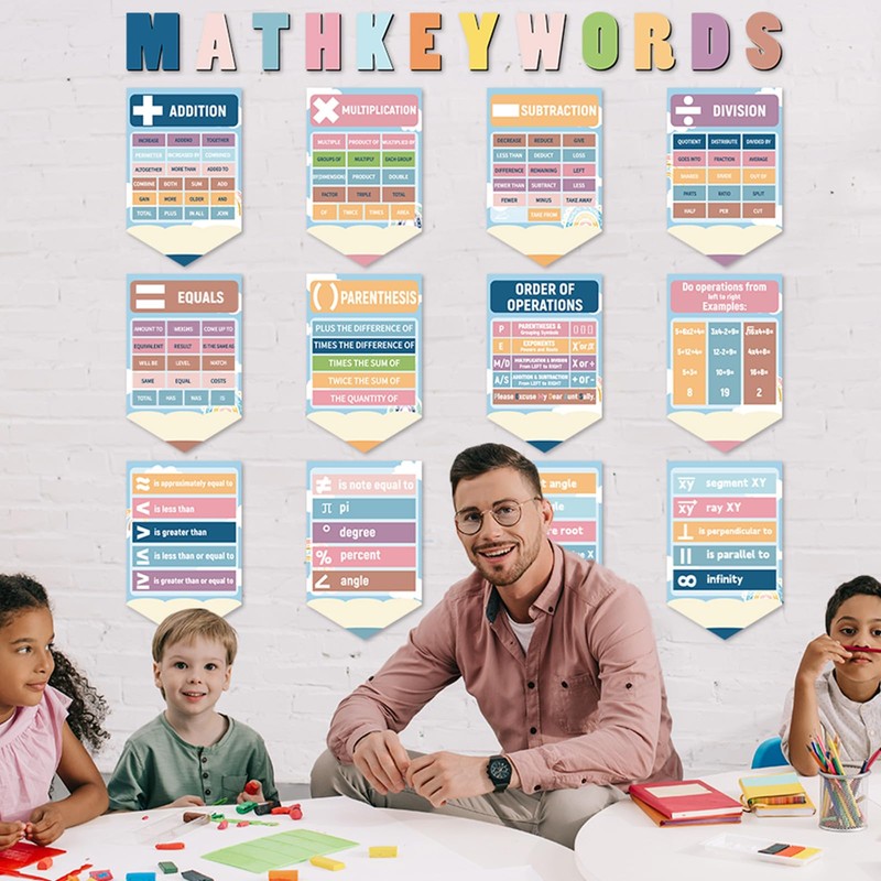 - High Quality: Made from durable paper with a glossy coating, these math classroom must haves are built to last. The vibrant prints resist fading and tearing. Waterproof and sturdy, the boho math keywords poster set can be reused year after year without losing its charm.