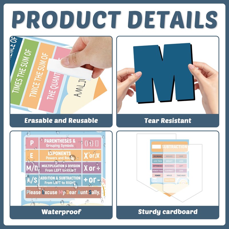 - Easy to Use: This math symbol poster bulletin board set includes plenty of adhesive dots for easy setup. Simply peel and stick the boho math classroom posters wherever you need them-on walls, windows, doors, whiteboards, or chalkboards. The adhesive dots are easy to remove and reposition, so you can update your display as needed.