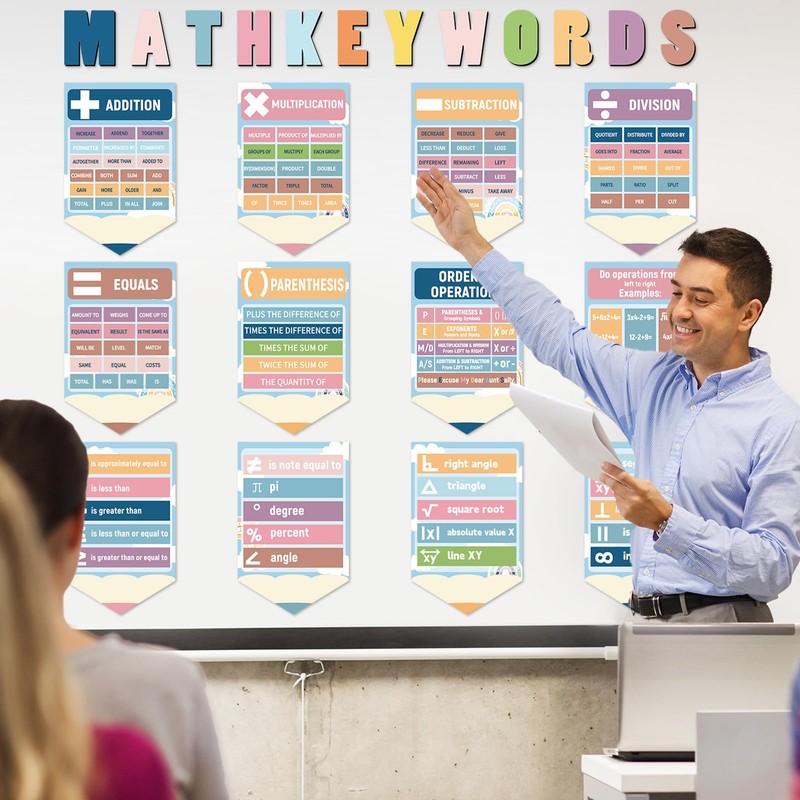 - Package Includes: This boho math bulletin board set includes 12 letter cutouts (11.4 x 10.4 cm / 4.5 x 4.1 inches), 12 math posters for classroom (22.5 x 35 cm / 8.9 x 13.8 inches), and 3 sheets of adhesive dots. The math posters are designed to engage students and spark their enthusiasm for learning.