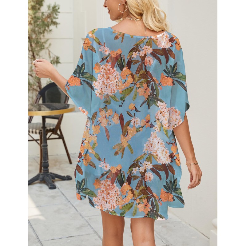 Chunoy Womens Chiffon Tunic Top V Neck Beach Blouse for Summer Casual Loose Cover Up