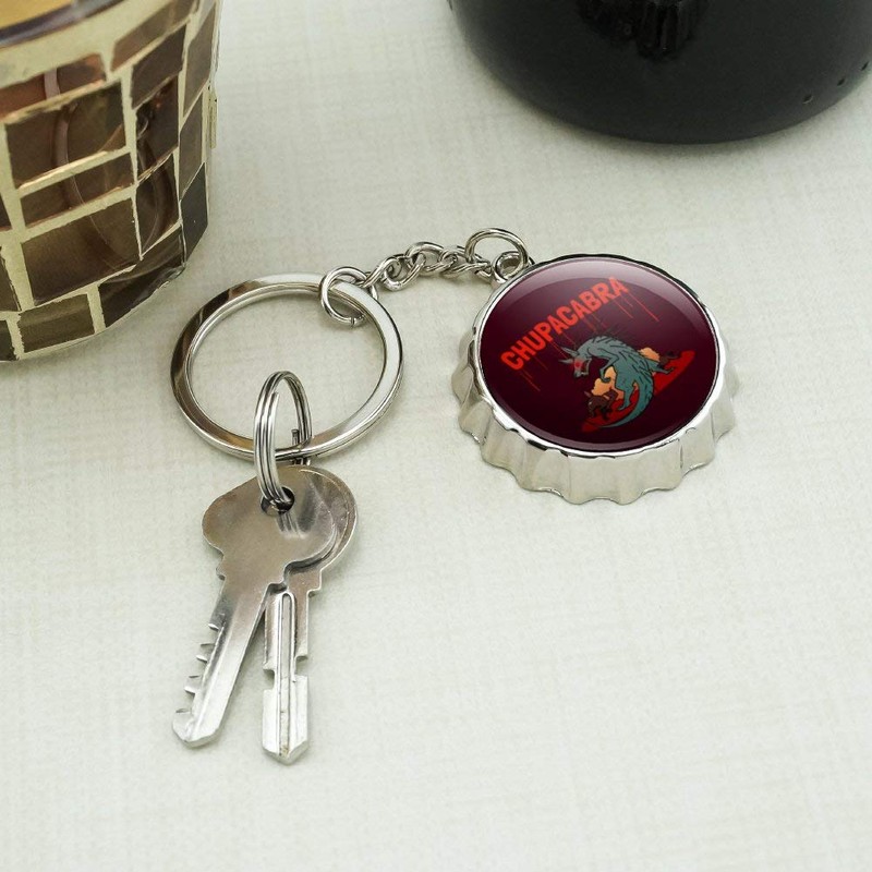 Chupacabra on The Hunt Keychain Chrome Plated Metal Pop Cap Bottle Opener