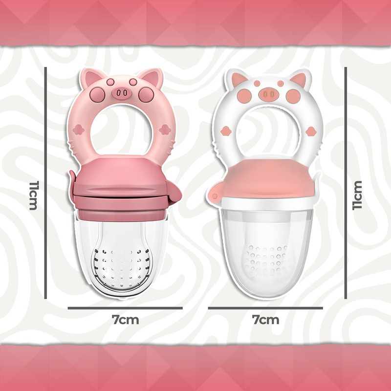 Chupón Para Fruta Y Papilla con Seguro Y Tapa Dibujos Animados, 2 piezas, Libre de BPA (ROSA Y BLANCO ROSA)