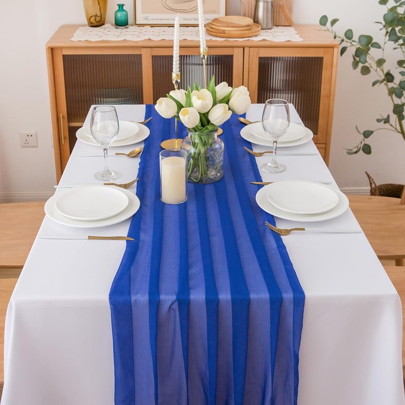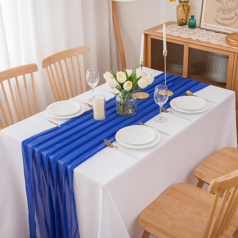 Chuqing Chiffon Table Runner, Royal Blue, 70 cm x 3 m, Decorative Table Runner, Elegant Table Decoration for Birthdays, Weddings